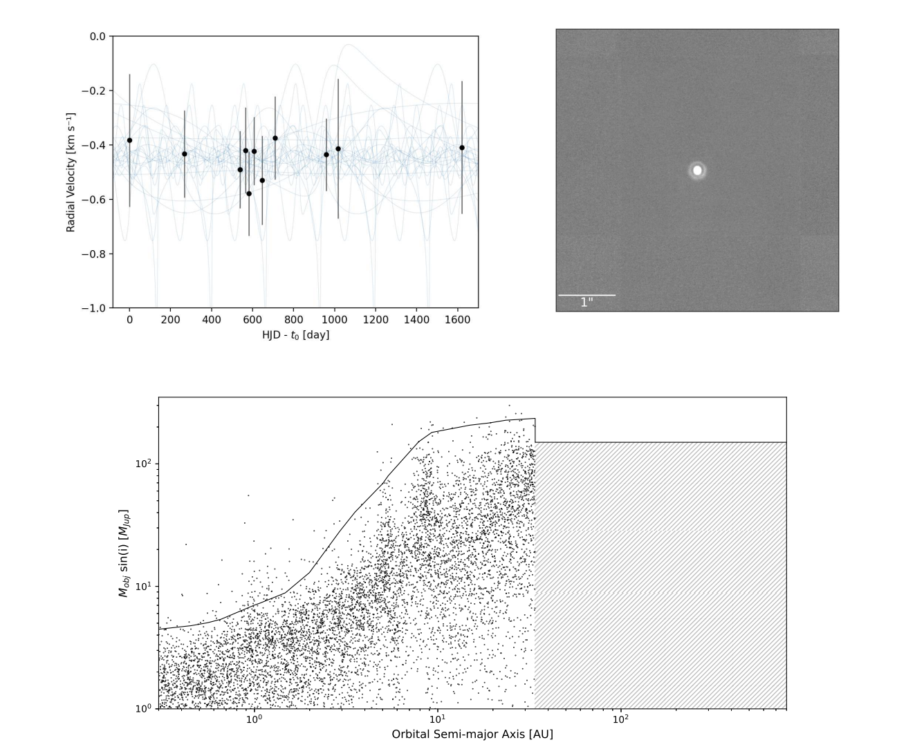 Additionally, high-resolution imaging (top right) and radial velocity monitoring (top left) detect no stellar or sub-stellar companions, ruling out external sources for the dust. These results make V488 Per a uniquely informative system for studying planet formation and inner planetary system dynamics.
